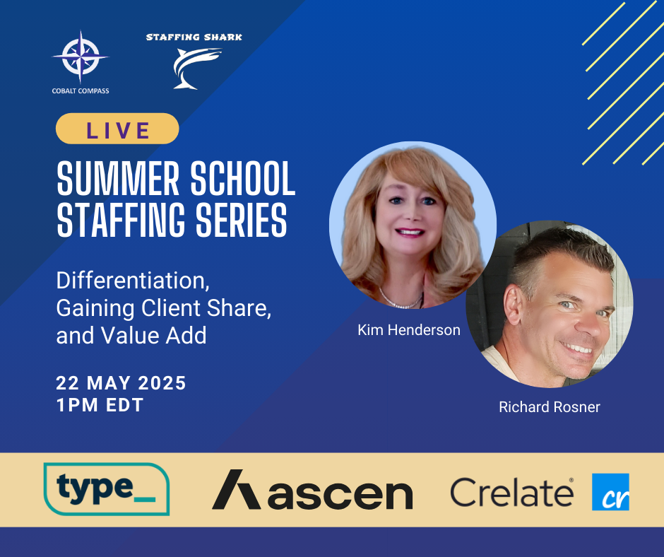 It’s a 4-part sales training series designed for staffing professionals who want to close more deals, build consistent revenue, and scale smarter in 2025. Each session is led by industry experts Kim Henderson and Richard “The Staffing Shark” Rosner.